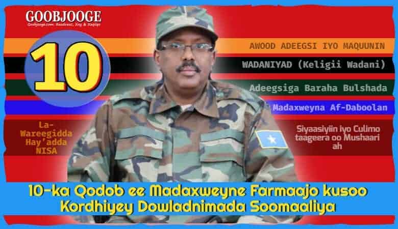 Tobanka dhaqan siyaasadeed ee Farmaajo uu soo kordhiyey waxay kala yihiin:
