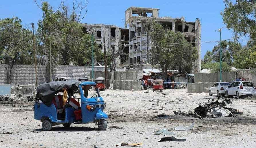 The large explosion shook the center of Mogadishu and a large plume of smoke rose above the scene of the blast, a building that houses Somalia’s ministries of labor and works.