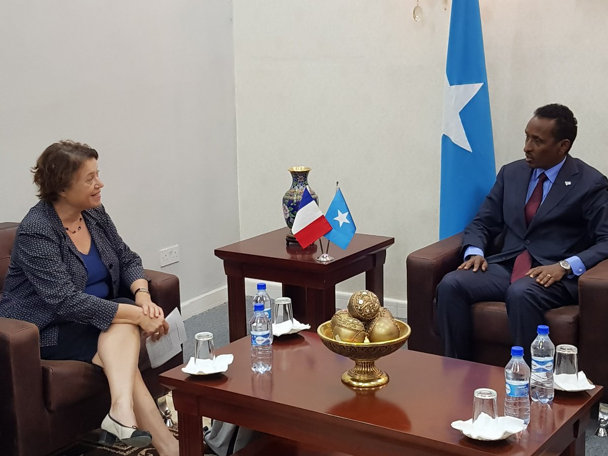 Wasiirka arrimaha dibadda Soomaaliya Axmed Ciise Cawad ayaa xafiiskiisa ku qaabilay safiiradda cusub ee Faransiiska u soo magacaabay Soomaaliya haweeneyda lagu magacaabo Aline Kuster-Menager.