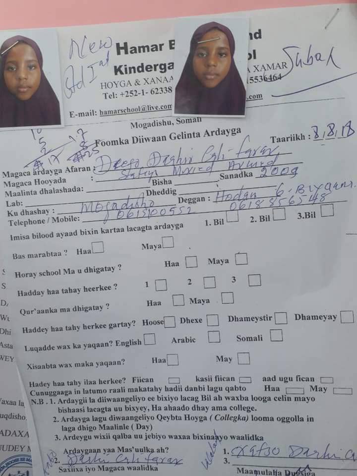 Wararka laga helayo magaalada Muqdisho ayaa sheegaya in is-rasaaseyn ka dhacday magaalada Muqdisho lagu dilay gabar yar oo 9 sano jir ah oo ka tirsan oo dhigata Dugsiga Hoyga Xamar ee Hamar Boarding School.
