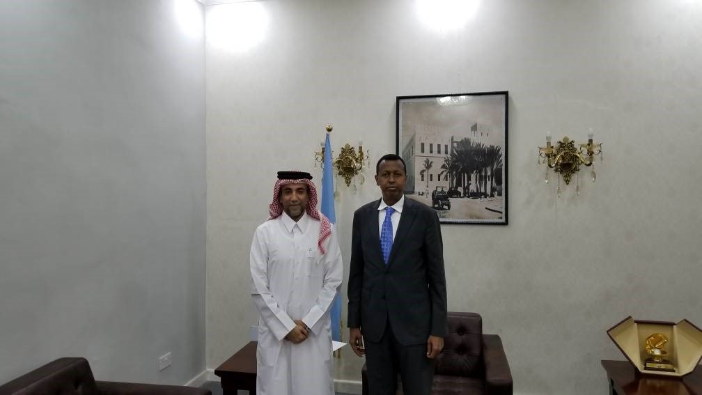 Wasiirka arrimaha dibadda Soomaaliya ayaa xafiiskiisa ku qaabilay arrime fuliyaha dalka Qatar u jooga Soomaaliya Xuseen Bin Xamza.