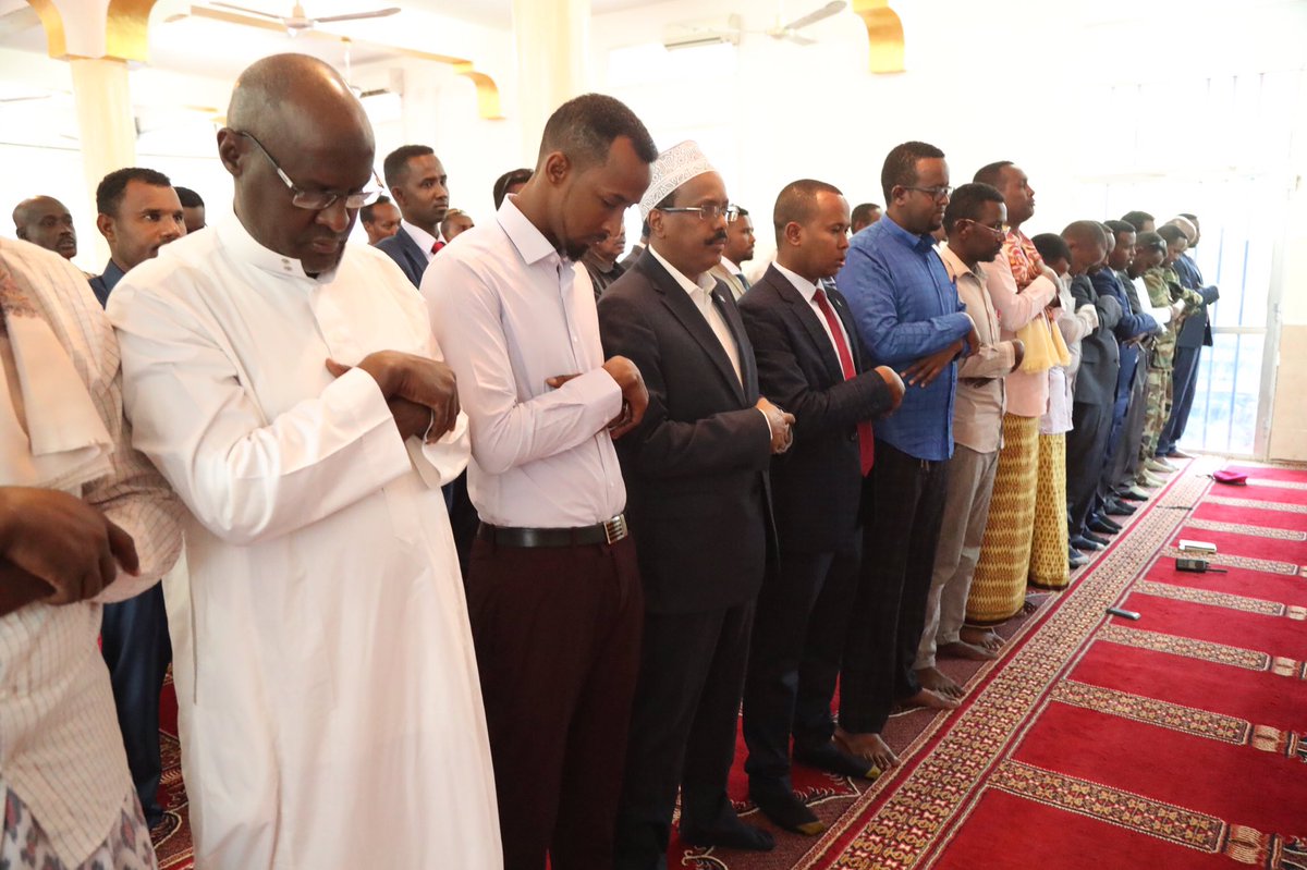 Wararka ayaa sheegaya in madaxweynaha uu ku tukaday Masjidka yar ee Madaxtooyada dhexdeeda ku yaalla, taasoo aan looga baran madaxweyne Farmaajo munaasabadana ciidaha.