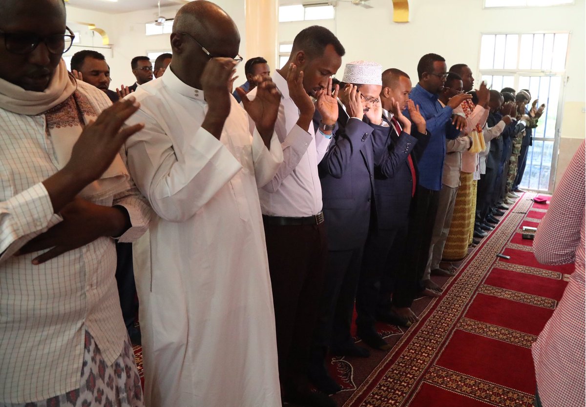 Waxaa masjidka iska xaadiriyay Guddoomiyaha Baarlamaanka Prof. Maxamed Sheekh Cismaan (Jaawari) iyo Ra’iisul Wasaare Xasan Cali Kheyre, iyadoo ay sidoo kale kasoo qeyb galeen madax fara badan iyo shacab.