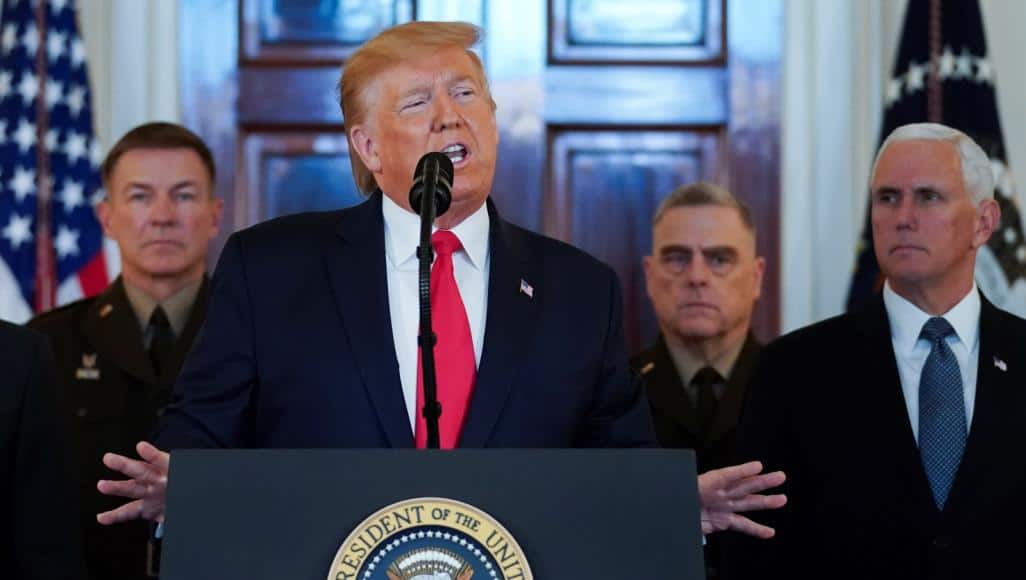 Madaxweyne Trump ayaan soo hadal qaadin weerar lagu qaadayo Iiraan iyo jawaab laga bixinayo weerarkii ay ku qaaday saldhigyada Mareykanka ee dalka Ciraaq, iyadoo hadda muuqato in xiisadii milateri ay meesha ka baxday.