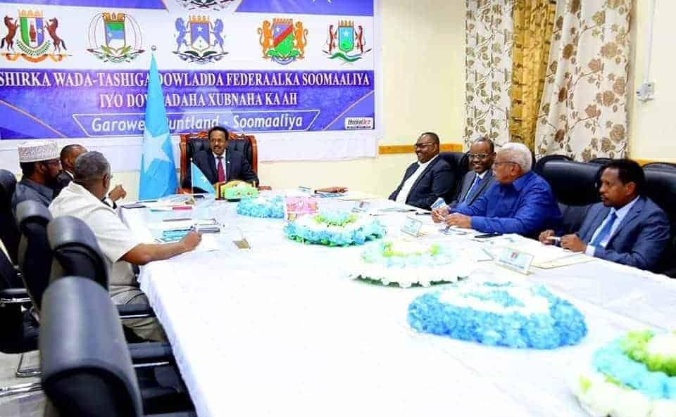 Madaxweynaha Galmudug Axmed Ducaale Geelle (Xaaf) ayaa lagas oo xigtay inuu Shirka Wada-tashiga Dowladda Federaalka iyo maamul Goboleedyada uu hordhigay shuruud adag oo ah in marka hore la xaliyo khilaafka u dhaxeeya Madaxda dowladda Federaalka iyo Galmudug, inta aan si buuxda loo guda gelin wadatashiga arimaha masiiriga ah sida Aminga qaranka, hannaanka Doorashada iyo Qeybsiga kheyraadka.