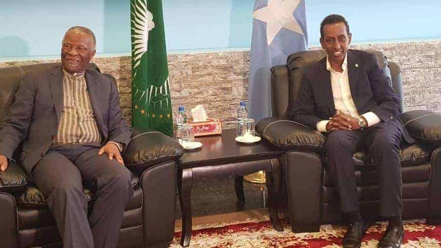 Madaxweynihii hore ee Koonfur Afrika Thabo Mbeki ayaa lagu soo dhoweeyay magaalada Muqdisho, isagoo madax ka ah Guddiga sare ee fulinta Midowga Afrika u qaabilsan Suudaan iyo Koonfurta Suudaan.