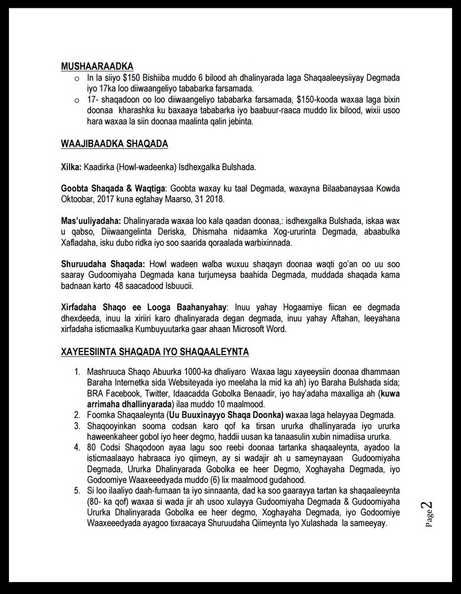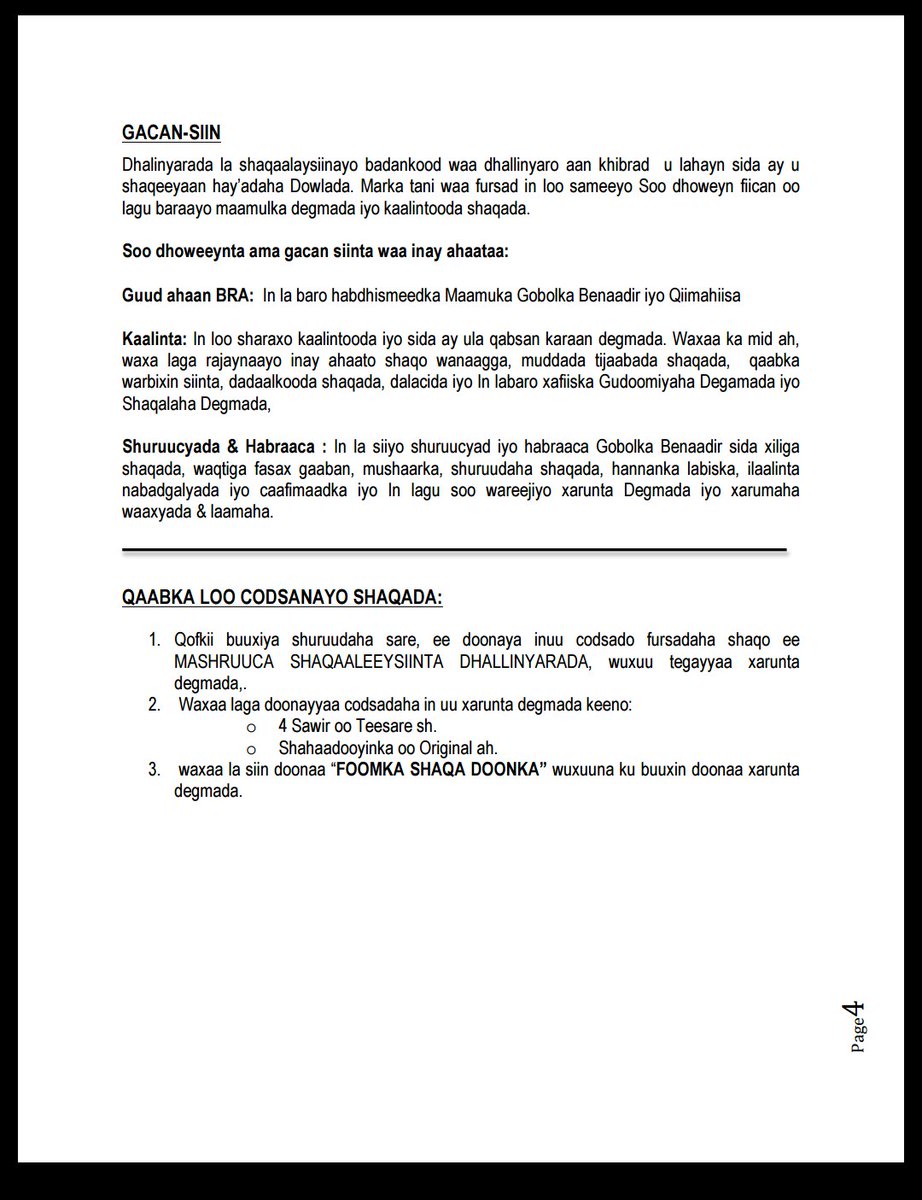 Degmooyinka Gobolka Banaadir ayaa la sheegay inay u furan yihiin qabashada codsiyada dhalinyarrada shaqo-doonka ah, waxaana lasoo saaray faahfaahin shaqada iyo qaabka loo kala saarayo dadka soo codsanaya.