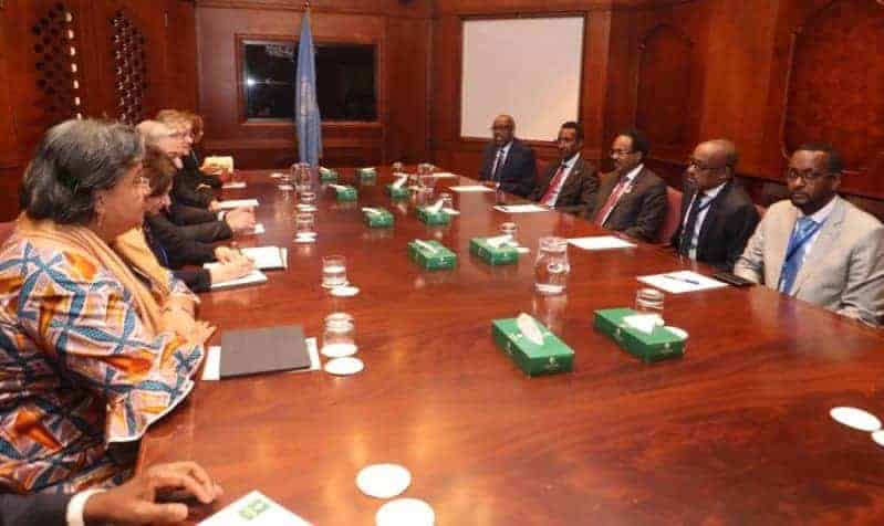 Afhayeenka xoghayaha guud ayaa sheegay in shirka looga hadlay wadashaqeynta Q/Midoobay iyo dowladda Soomaaliya, iyadoo xoghayaha guud ee Q/Midoobay uu madaxweynaha Soomaaliya ku booriyey inay wadashaqeyn buuxda la yeeshaan maamul Goboleedyada oo ay qeyb ka noqdaan tubaha dowlada Soomaaliya ee siyaasadda loo dhan yahay, Amniga, cadaaladda iyo dhaqaalaha.