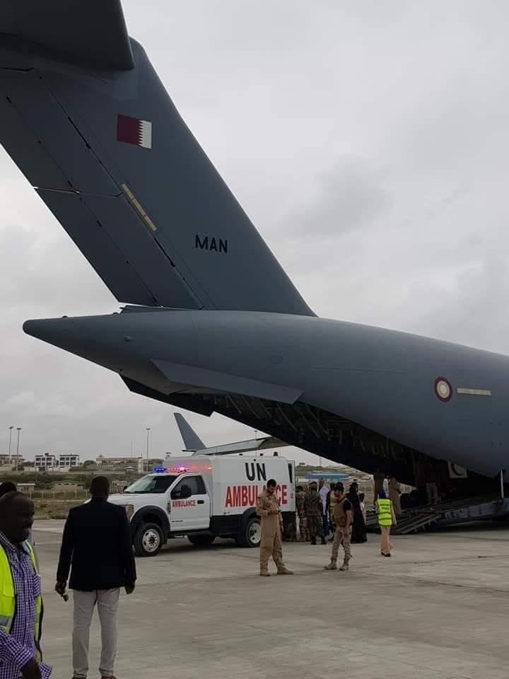An official source at the Ministry of Foreign Affairs said that the State of Qatar on Thursday dispatched an equipped plane with medical staff to the Aden Adde International Airport in the Somali capital Mogadishu to transport those injured in the suicide attack that targeted officials in the municipality of Mogadishu, to Doha for medical treatment.