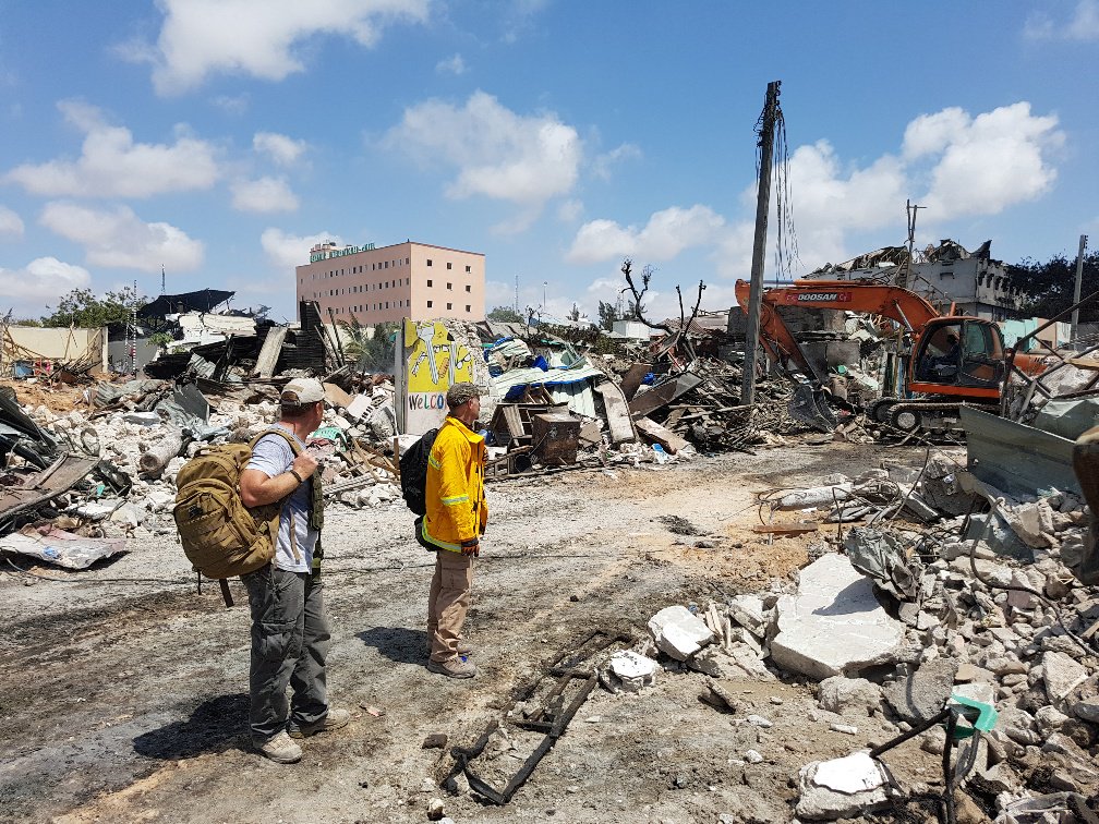 Qeybta Fire Section ee shaqaalaha Q/Midoobay ayaa goobta geystay Qalab awooda inuu sheego haddii qof nool ay ku hoos jirto burburka iyo xirfadleyaal ku shaqeeya, iyadoo gacan ka helay hay’adaha kale ee Q/Midoobay sida UNMAS iyo UNDP.