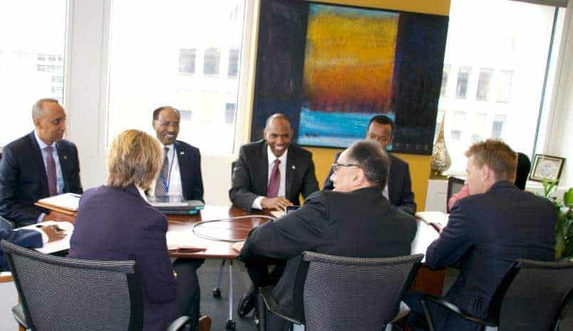 Ra’iisal wasaaraha xukuumadda Soomaaliya iyo wafdigii uu hoggaaminayey oo socdaal shaqo ku jooga dalka Mareykanka ayaa kulan la yeeshay guddoomiye ku xigeenka Bankiga Adduunka Hafez Ghanim.