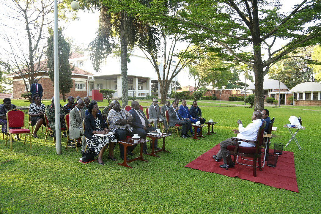 Madaxweynaha Jamhuuriyadda Federaalka Soomaaliya Mudane Maxamed Cabdullaahi Farmaajo ayaa waxaa kulanka ku weheliyay Wasiirka Arrimaha Dibadda iyo Iskaashiga Caalamiga ah, Mudane Yusuf-Garaad Cumar, Wasiiru-Dowlaha Wasaaradda Gaashaandhigga Mudane Maxamed Cali Xagaa, Guddoomiyaha Guddiga Difaaca Baarlamaanka Xildhibaan Xuseen Carab Ciise, Safiirka Soomaaliya ee dalka Uganda Mudane Sayid Axmed Sheekh Daahir, Lataliyaha Madaxweynaha ee dhanka Ciidamada Sarreeye-Guud Bashiir Maxamed Jaamac iyo Lataliyaha Arrimaha Siyaasadda Dibadda, Mudane Balal Maxamed Cisman.