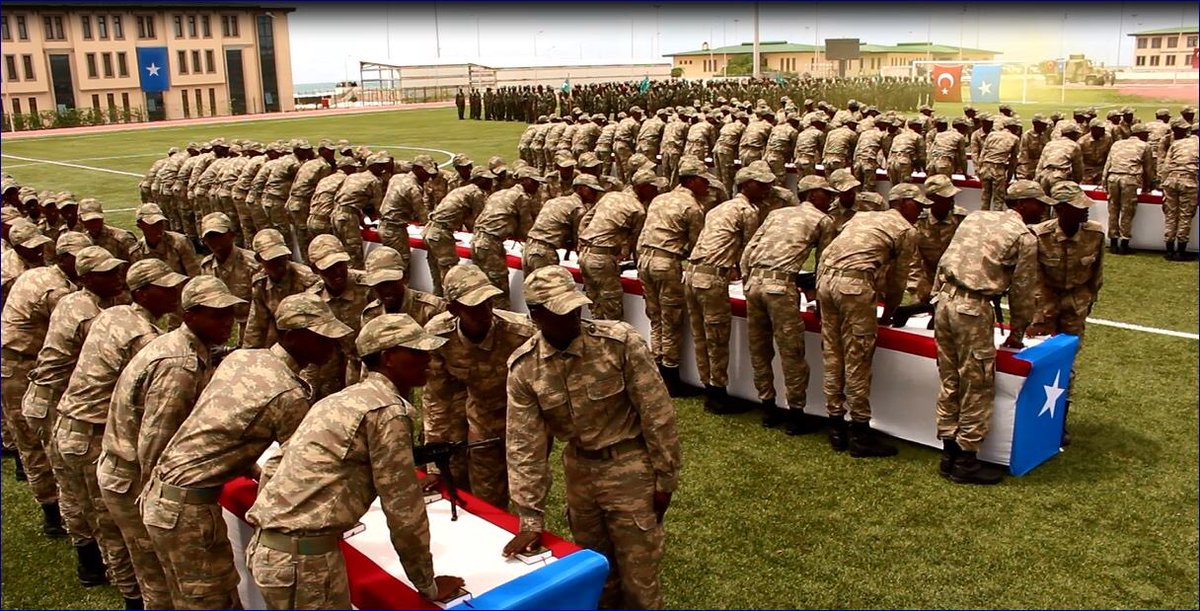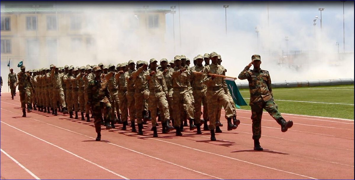 Munaasbad tababar loogu soo xiray, laguna dhaariyey saraakiil ku soo biiray ciidamada xoogga dalka ayaa maanta ka dhacday saldhigga Milatgeriga Turkiga ee magaalada Muqdisho.