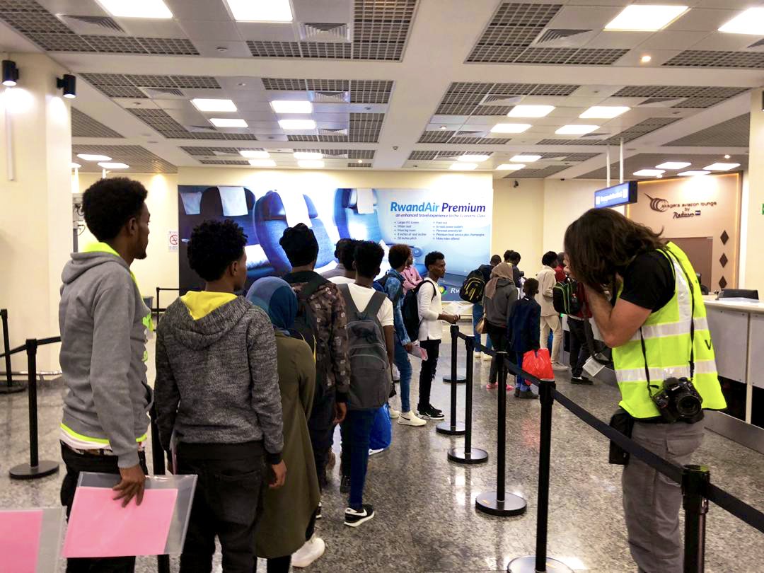 Kooxdan oo ka kooban 66 qof oo qaxooti African ah oo laga soo qaaday dalka Libya, waxayna gaareen dalka Rwanda, iyadoo ay ka midd yihiin carruur iyo hooyooyin. Qaramada Midoobey ayaa sheegtay in kooxdan ugu horreysay ee muhaajiriinta ay ka mi dtahay hooyo soomaaliyeed iyo canugeeda oo 2 bilood jira.