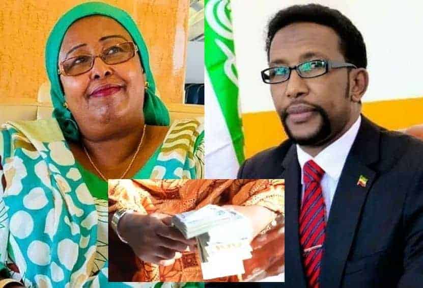 “Ma awoodo in ra’iisal wasaaraha aan wasiirkiisa ahay, mushaarka aan ka qaato ee dhan $300 aan kuu soo diro.. Saaxiibada kale waxaan u celinayaa lacagtooda.. Waxaan ula daahay lacagta waxay ahayd inaan 20-kun Dollar gaarsiiyo.. Dadka lacagta aan kasoo qaaday waxaa ku jira lix qof oo saaxiibo ah, oo qaarkood ay is xigaan dadka lasoo barakiciyey..” ayey tiri wasiir Khadiija.