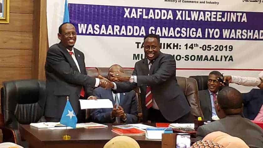 Wasiir Maareeye ayaa wasiirka cusub wuxuu ku wareejiyay document-yada wasaaradda ganacsiga iyo qorshooyinka qabyada ah ee horyaala xiligaan. Wasiirka cusub ee wasaaradda ganacsiga iyo warshadaha ayaa u mahad celiyay madaxweynaha iyo ra’iisul wasaaraha sida ay ugu sharfeen uguna aamineen xilka wasaaradda.