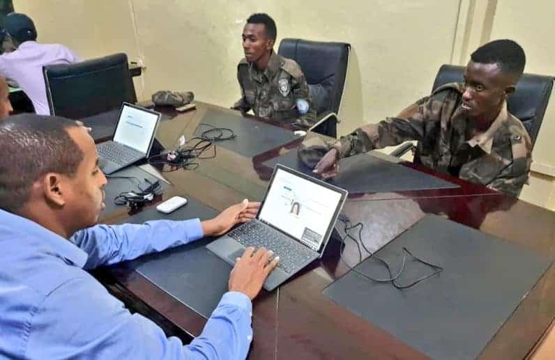 “Maanta maamulka & shaqaalaha Wasaaradda Maaliyadda waxay ay sii wadeen diiwaangelita xubno ka tirsan Ciidamada Booliska Soomaaliyeed ee Muqdisho. Dib-u-habeynta waaxda amniga ayaa ah muhiimadda ugu weyn ee lagu gaari karo hadafkeena Qaran iyo mustaqbalkeena si aan adeegno dalkeena..” ayuu yiri wasiir Beyle, inkastoo muuqaaladda ay ahaayeen ciidamo milateri ah.