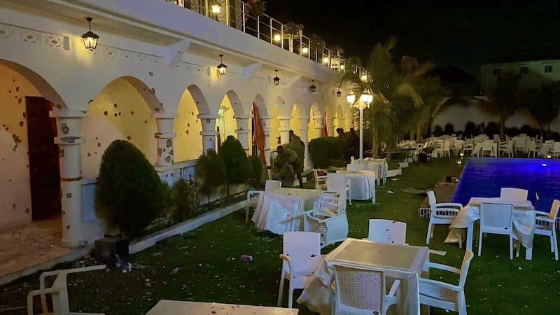 Weerarka oo socday muddo ka badan 10 saacadood ayaa ku bilowday laba Qarax oo is-miidaamin ah, waxaana Hotelka gudaha u galay dabley ka tirsan Alshabaab oo muddo saacado ah gudaha Hotelka kula dagaalamayey ciidamada amniga.