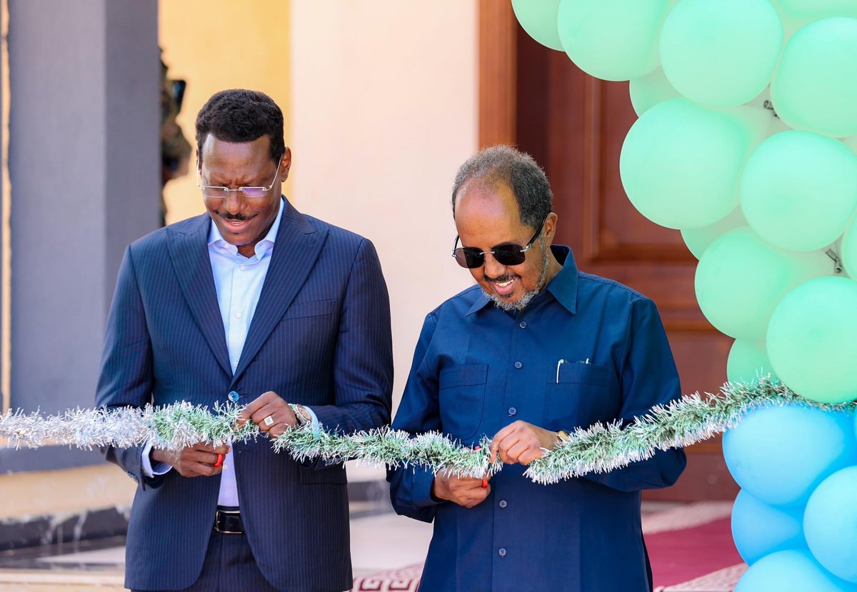 Madaxweynaha Soomaaliya Xasan Sheekh Maxamuud oo uu weheliyo Madaxweynaha Galmudug Axmed Cabdi Kaariye (Qoorqoor) ayaa maanta xarigga ka jaray dhismaha cusub ee xarunta Madaxtooyada Galmudug.