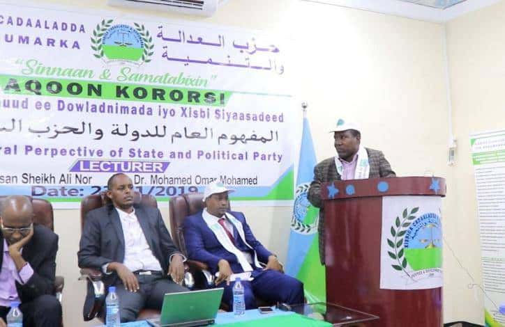 Xisbiga Cadaaladda iyo Horumarka ee JDP ayaa seminaar looga hadlayey ‘Fahamka Guud ee Dowladnimada iyo Xisbiyada siyasadeed’ ku qabtay magaalada Muqdisho, iyadoo ay ka qeyb galeen 150 qof oo isugu jira xubnaha iyo taageerayaasha ururka.